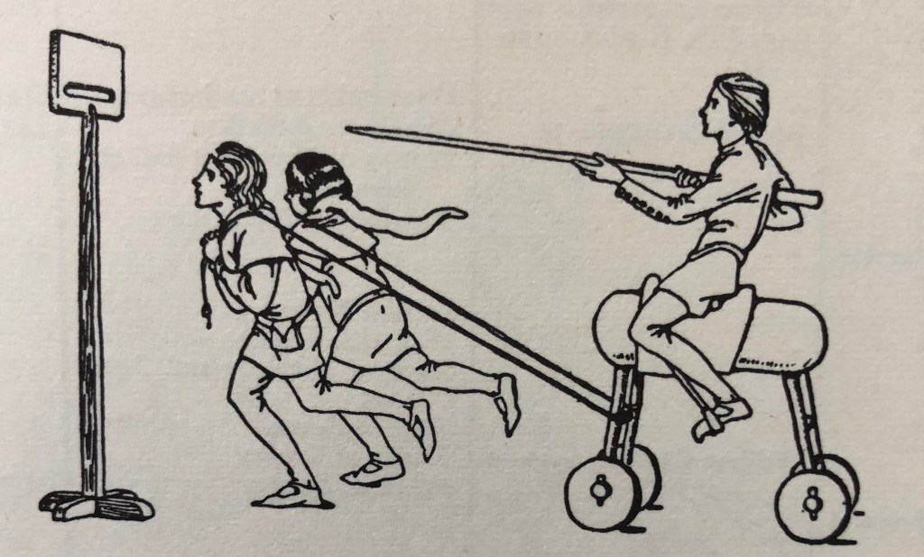 In 1677 Dr Robert Plot wrote about his home county of Oxfordshire where he saw the ancient sport of riding the Quintain at Deddington when it was only on request at weddings.