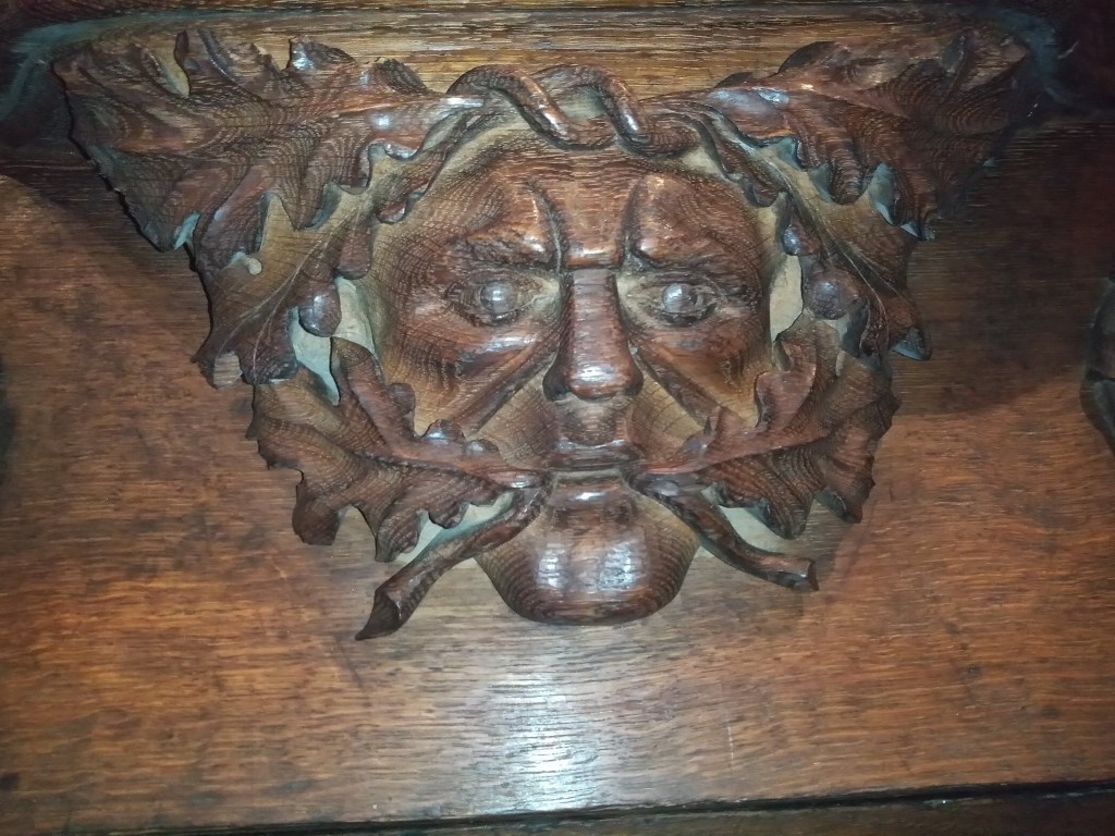 Llangwm UchafFownhope, St Mary, roof boss Medieval example from Wells, Bishops Palace This is from Quire, Winchester Cathedral with consent Carole BoweThis is from Little Wadingfield, Suffolk. Image from John VigarUnusual images from Broomfield, Somerset.only one I’ve seen on a gateSutton Bangor Green Man also some identifiable birdsYatton Keynall screen some sort of wildcat?Llantillio CrossenyUnusual profile image, 17th century Welsh Cupboard in Burrel Collection, @megthelibraria1 12th century tympanum from North door, St Leonard’s Shropshire. With permission from Andy MarshallUnusual in having foliage from nose rather than mouth. St Mary’s Temple Balsall, Warwickshire Brecon Cathedral, Wales. Not foliate as others but seems same concept
