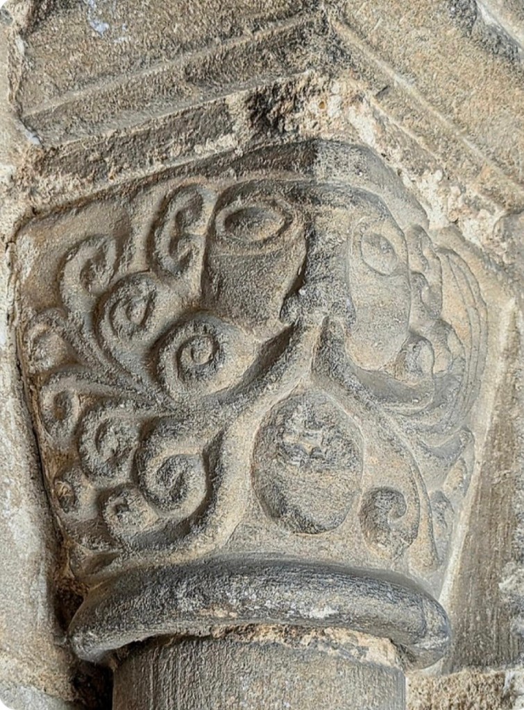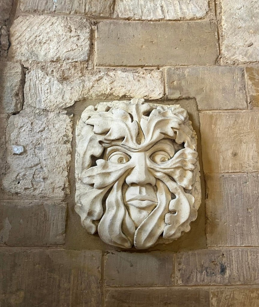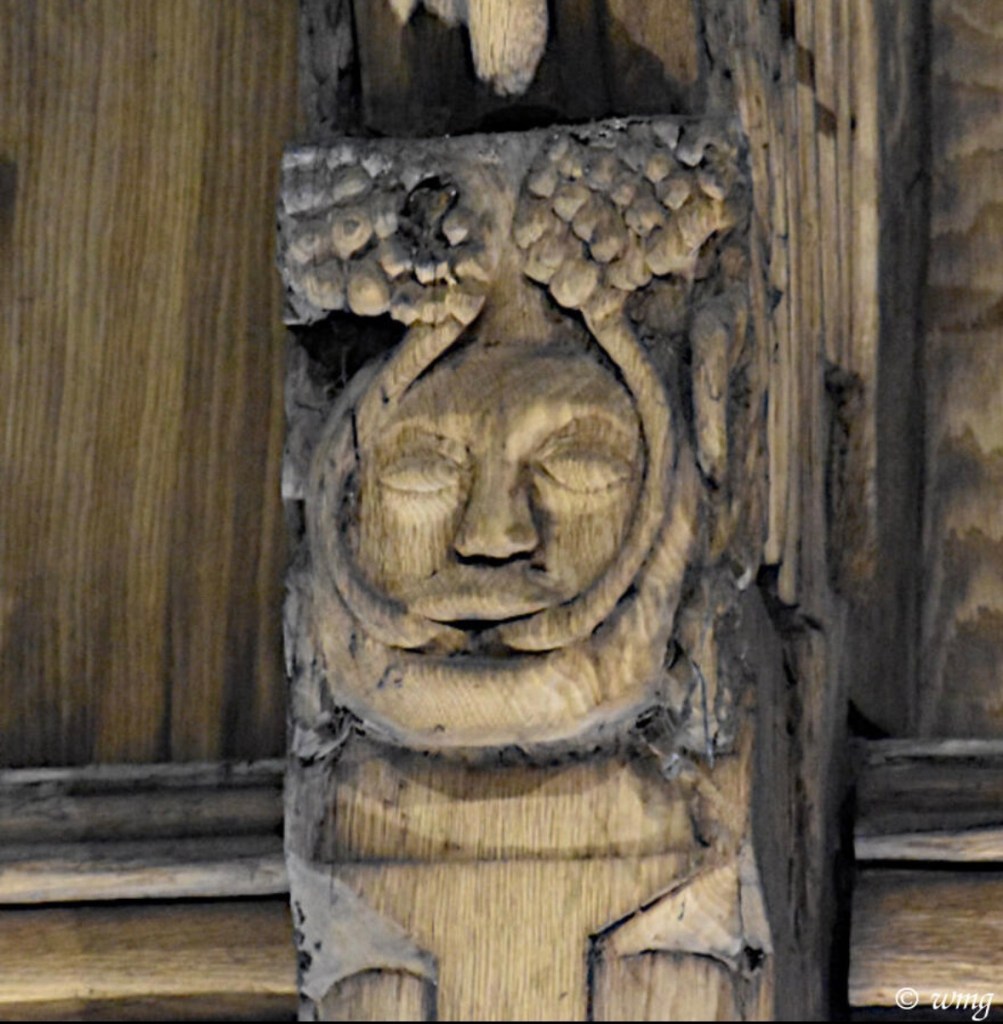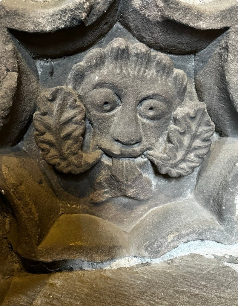 Unusual example as it seems to include berries. Do the eyes look like yew berries too? Adding to imagery of fertility? From St Peter, Wintringham, North Yorkshire in care of the CCT. With consent from @pacoulmag.