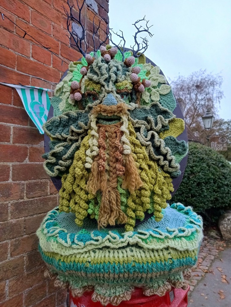 Very original design. Cornucopia instead of leaves, and flower face. At Old House, Hereford High Town with consent Posy Hill