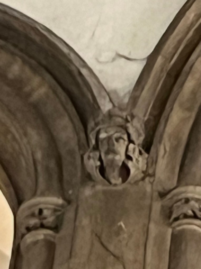 This is the first I’ve seen with foliage from its ears. From Mark Purcell. Winchester college Chapel.