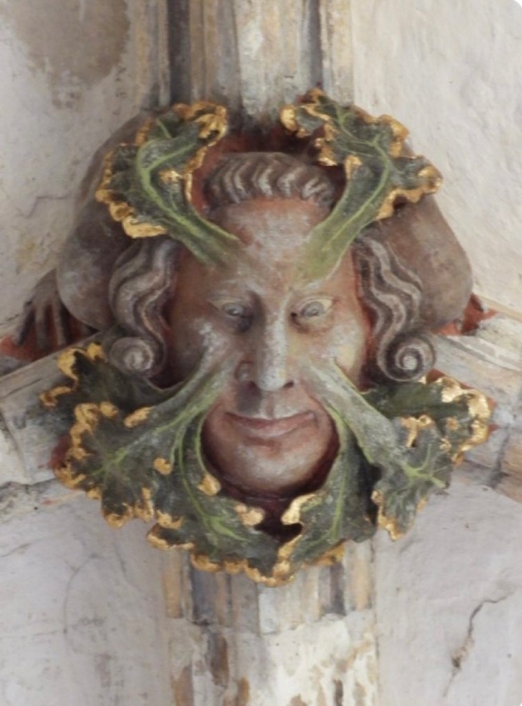 This spectacularly green Green Man is from Leckhampstead, St Mary, with permission from Fiona Chartres