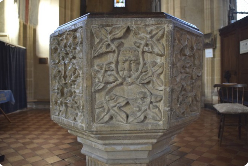 From St Leonard’s Eynsham with consent @liber-ray.bsky.social from underside of font probably from the abbey