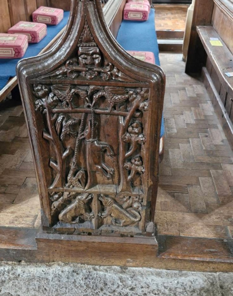 From Medfield, Suffolk. A gift from St Sanna’s Sewing Guild. “One of the old gods banished from inside the church.” Courtesy of @GeoffreyMunn1