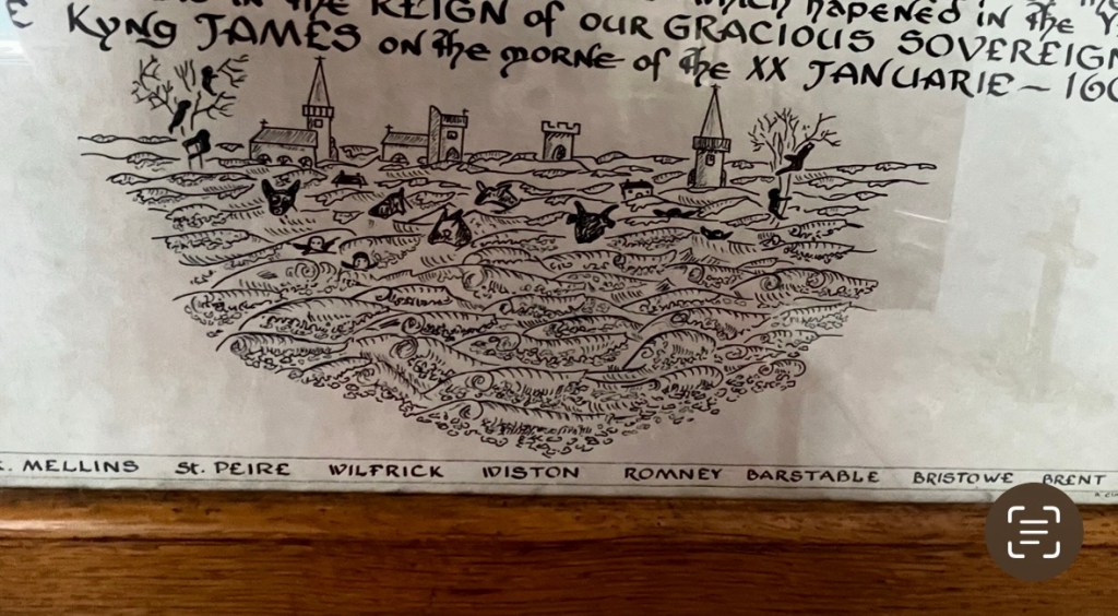 In the south Wales church of Nash is an old print-probably Victorian that names Romney, Brent and Lambeth which has been accepted as evidence of the Great Flood of 1607 reaching the East Coast and London which makes no sense. Part of the confusion comes from the confusion in dating at the time, i.e. the variable use of the Gregorian and Julian dating systems. But this book claims the East Coast Flood was almost exactly a year later. This makes sense in the east account mentions increased stocking of the east coast, to help recover from the previous year’s western flood.